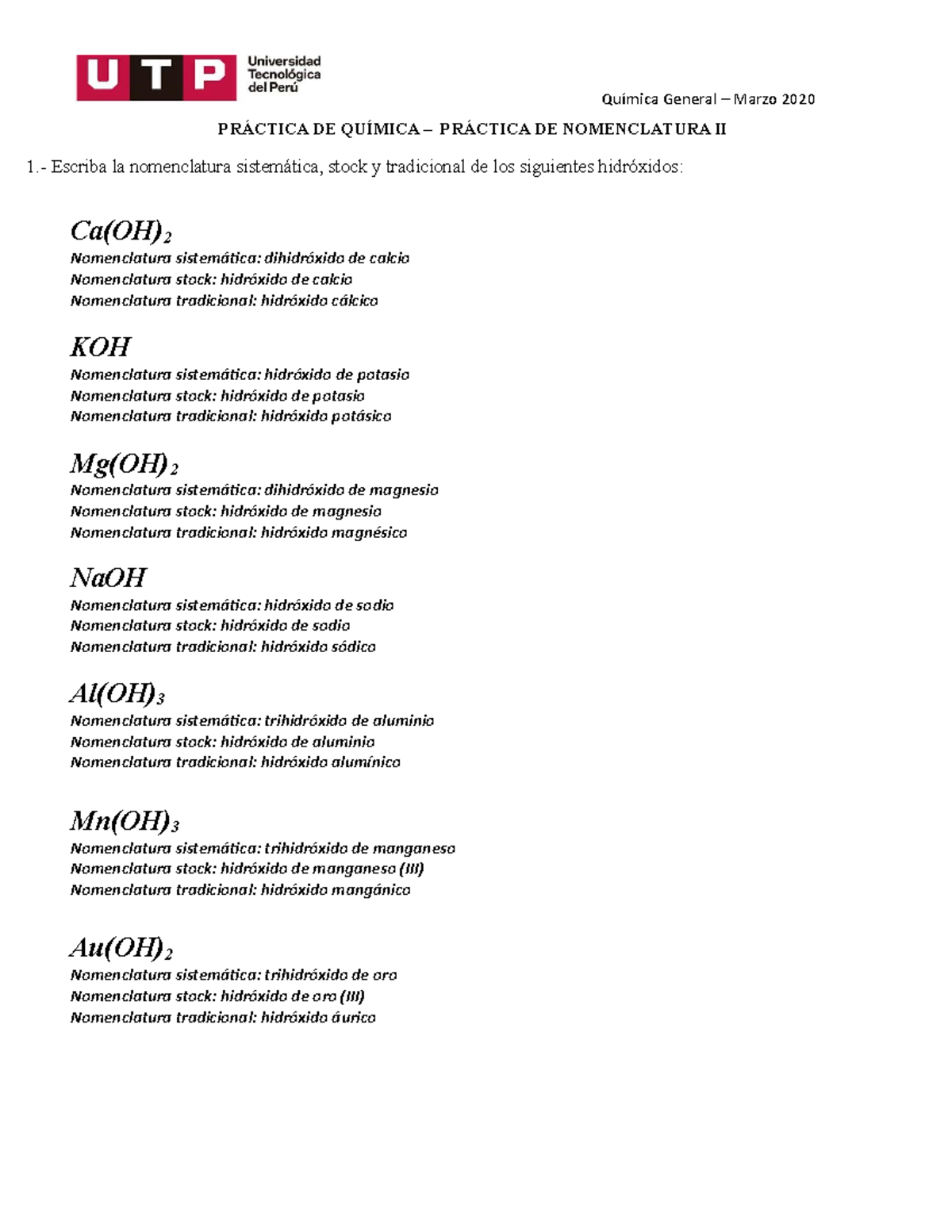 Nomenclaturas Quimica Quimica General Marzo 2020 Practica De Quimica Practica De Nomenclatura Studocu