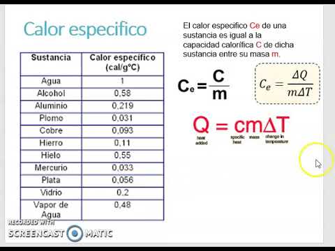 Esto significa que para aumentar la temperatura del agua hace falta que absorba mucho calor por unidad de masa. Corresponde a la variación de temperatura de un cuerpo por ejemplo al calentar una. Calor específico del hielo 05 calgC. Calor específico del plomo C es 0126 kJ kgK. Este comportamiento de los materiales es caracterizado cuantitativamente por el calor específico que es la cantidad de calor necesaria para incrementar la temperatura de 1 g de sustancia en 1 C. Para hacerse una idea para que 1 kg de agua aumente su temperatura 1 ºC se necesitan 4184 J julios mientras que solo se necesitan 385 J para hacer lo mismo con 1 kg de cobre o 130 J para el plomo.