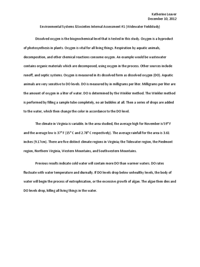 Ib Environmental Systems And Societies Sl Internal Assessment Pdf Water Oxygen