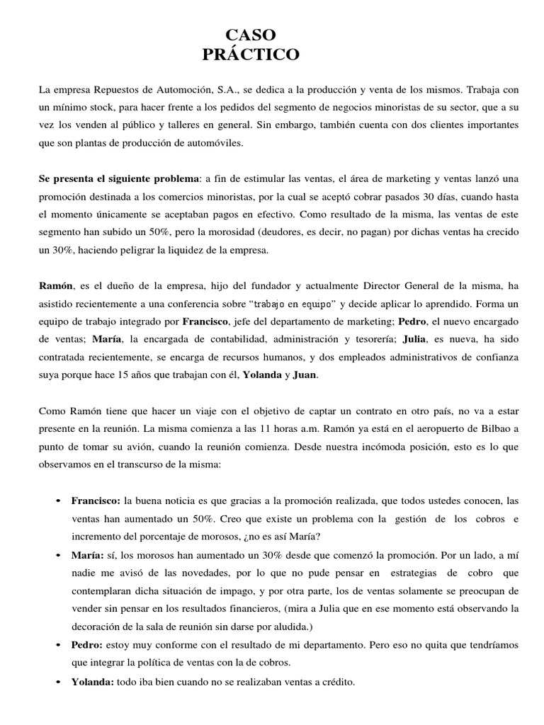 Caso Practico De Trabajo En Equipo Pdf Marketing Economias