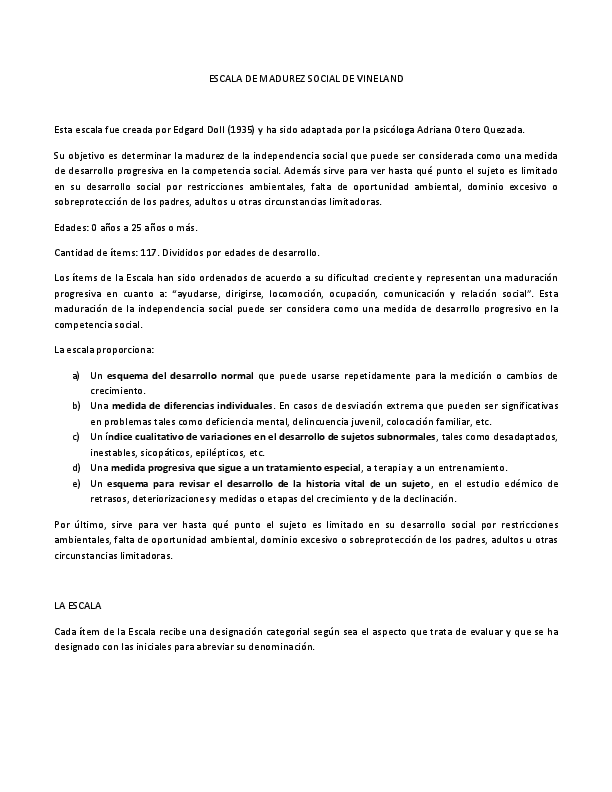 Full PDF Package Download Full PDF Package. 36 Full PDFs related to this paper Read Paper ESCALA DE MADUREZ SOCIAL DE VINELAND Esta escala fue creada por Edgard Doll 1935 y ha sido adaptada por la psicóloga Adriana Otero Quezada.