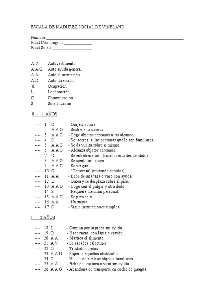 Escala de vineland pdf. 75 4 75 found this document useful 4 votes 1K views 106 pages. Ayuda de sí mismo alimentación. Ayuda de sí mismo. 01042010 Filed under Documentosdownloads pdf pptdoc Ficam aqui disponíveis para download algumas escalas de avaliação do espectro do Autismo. Doll dirigió la investigación en lesiones en el parto técnicas de electroencefalografía. Una evaluación por medio del informante.