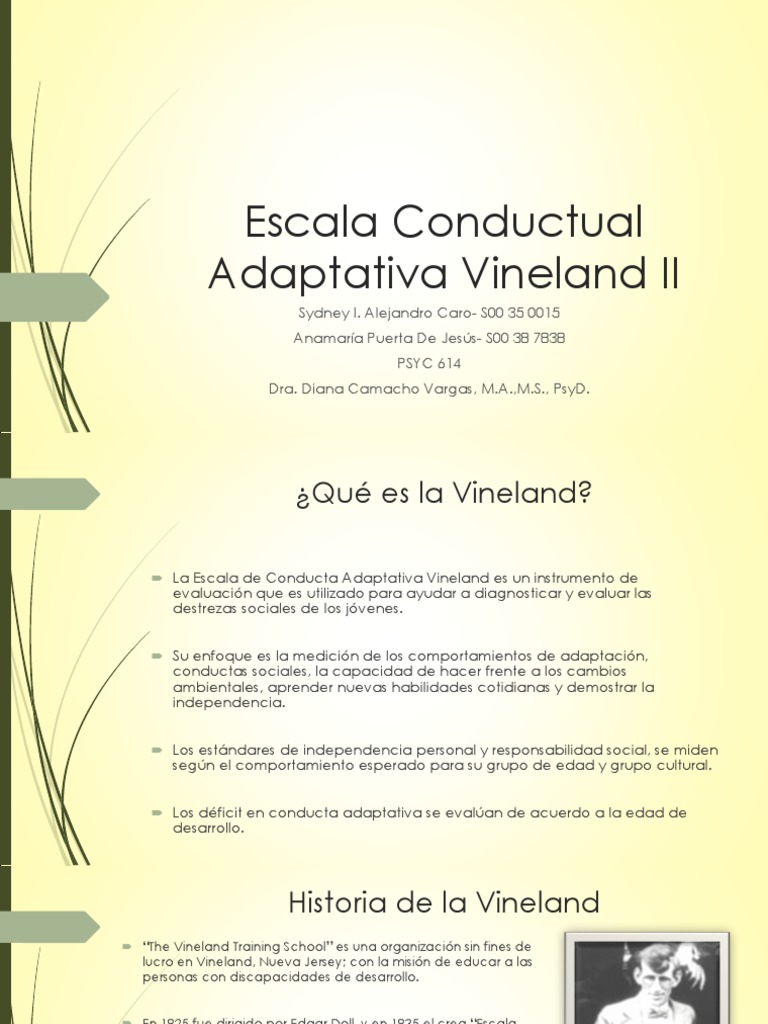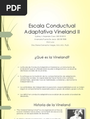 634 25 82KB Read more. Fazer o download agora mesmo. ESCALA DE MADURACIÓN SOCIAL DE VINELAND I. El término escala se introdujo en Vineland-II para transmitir el uso relativamente único de esta escala en Vineland. Baixe no formato DOC PDF TXT ou leia online no Scribd. Historia de la Vineland The Vineland Training School es una organización sin fines de lucro en Vineland Nueva Jersey.