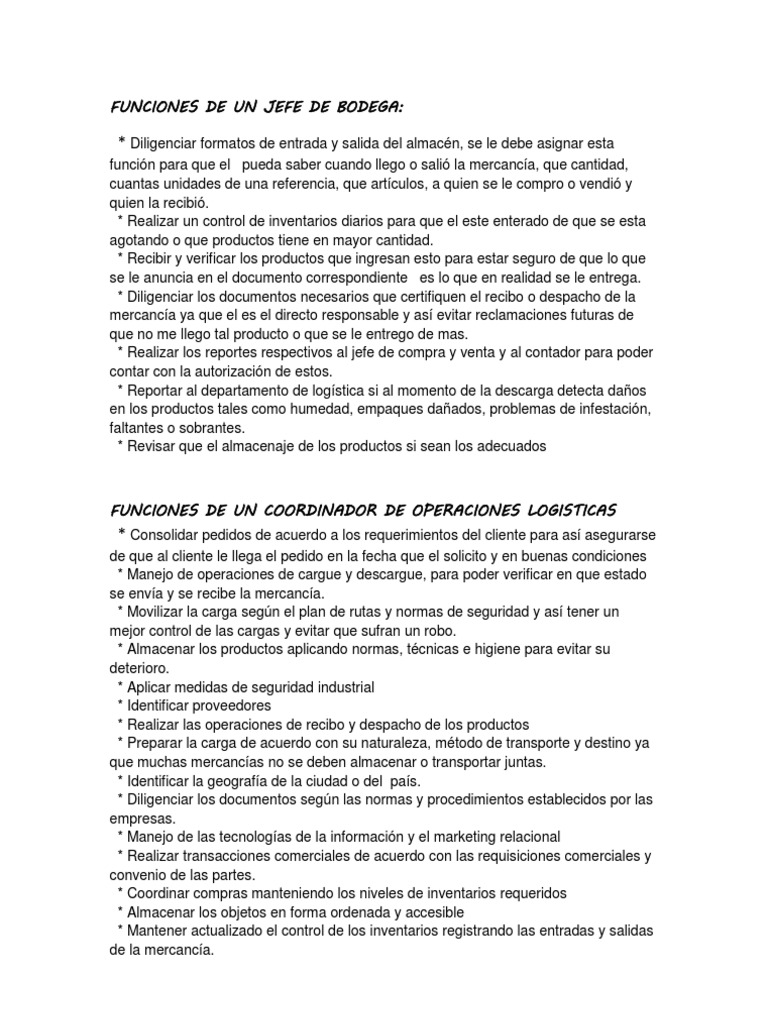 Funciones De Un Jefe De Bodega Pdf Logistica Almacen