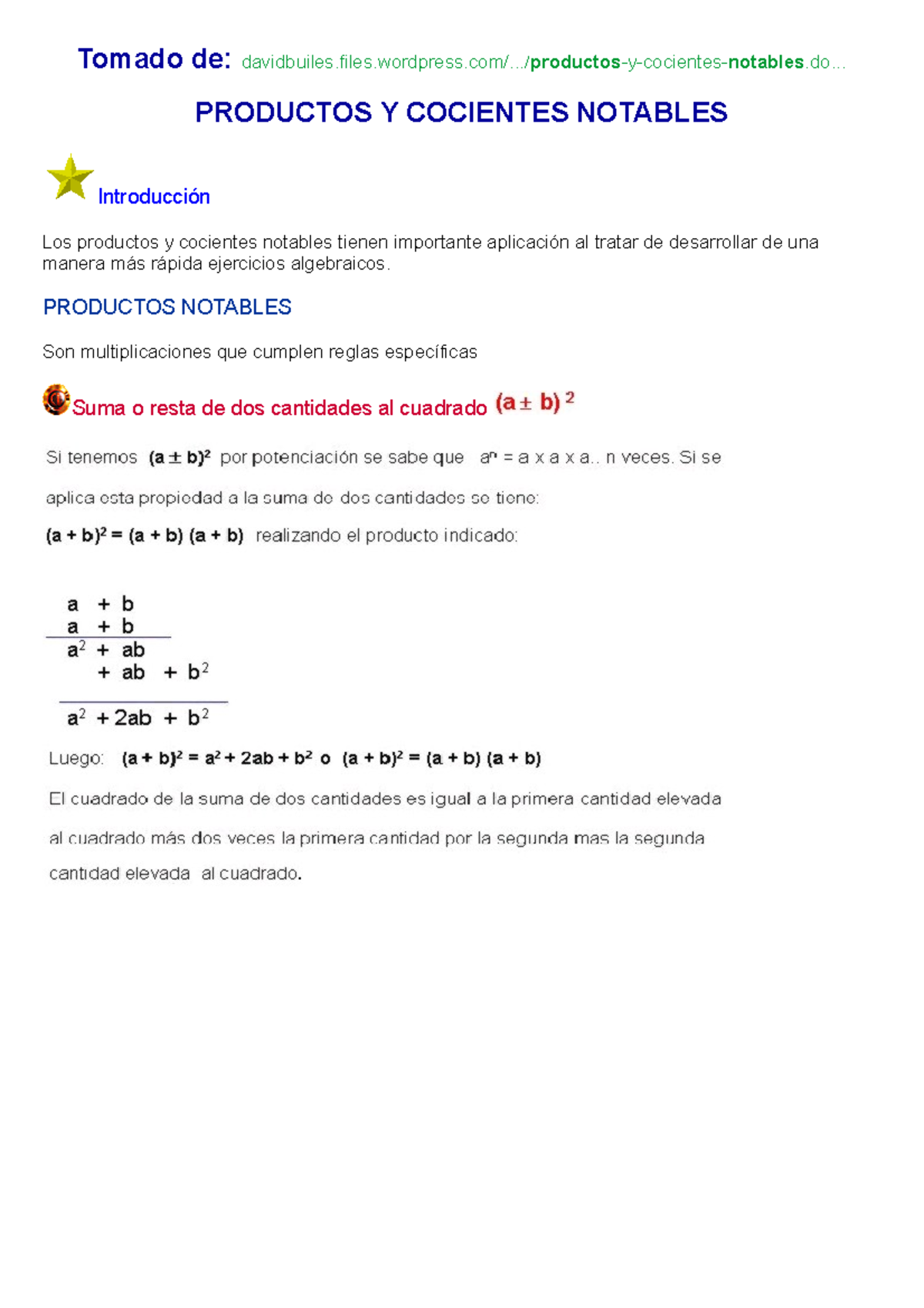 Productos Y Cocientes Notables Calculo I 11101 Uce Studocu