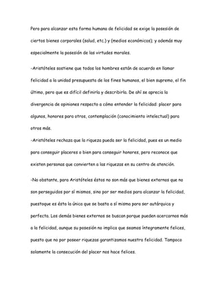 Felicidad Segun Aristoteles Resumen