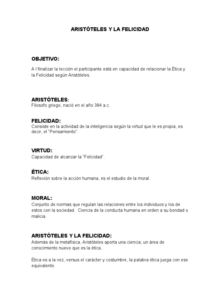La Felicidad Segun Aristoteles Pdf Felicidad Aristoteles