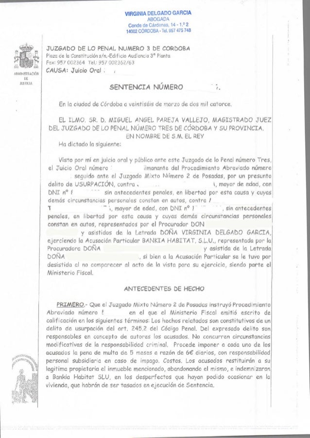 Sentencia Absolutoria De Usurpacion En Palma Del Rio