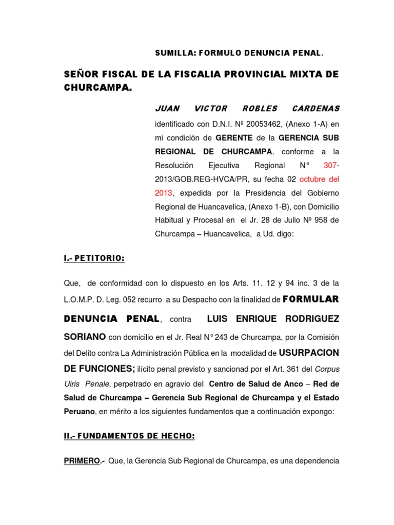 Denuncia Penal Usurpacion De Funciones Pdf Hospital Castigos
