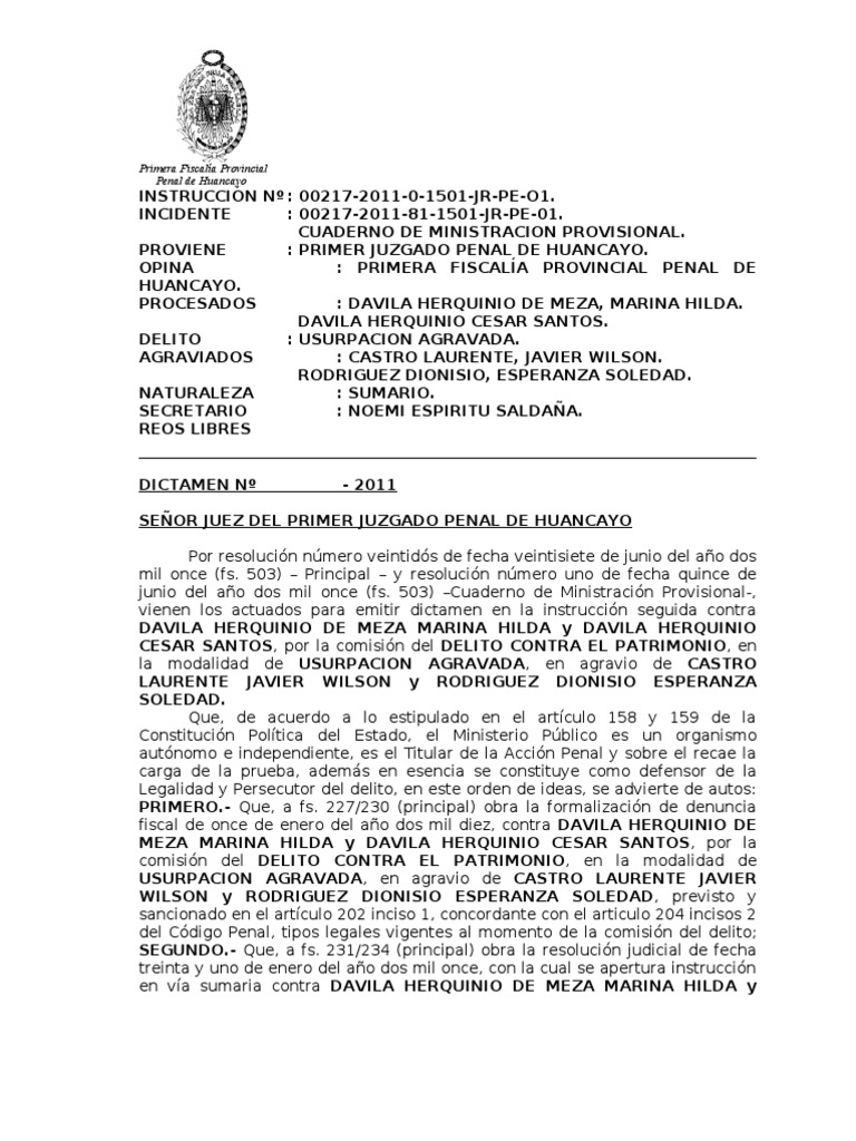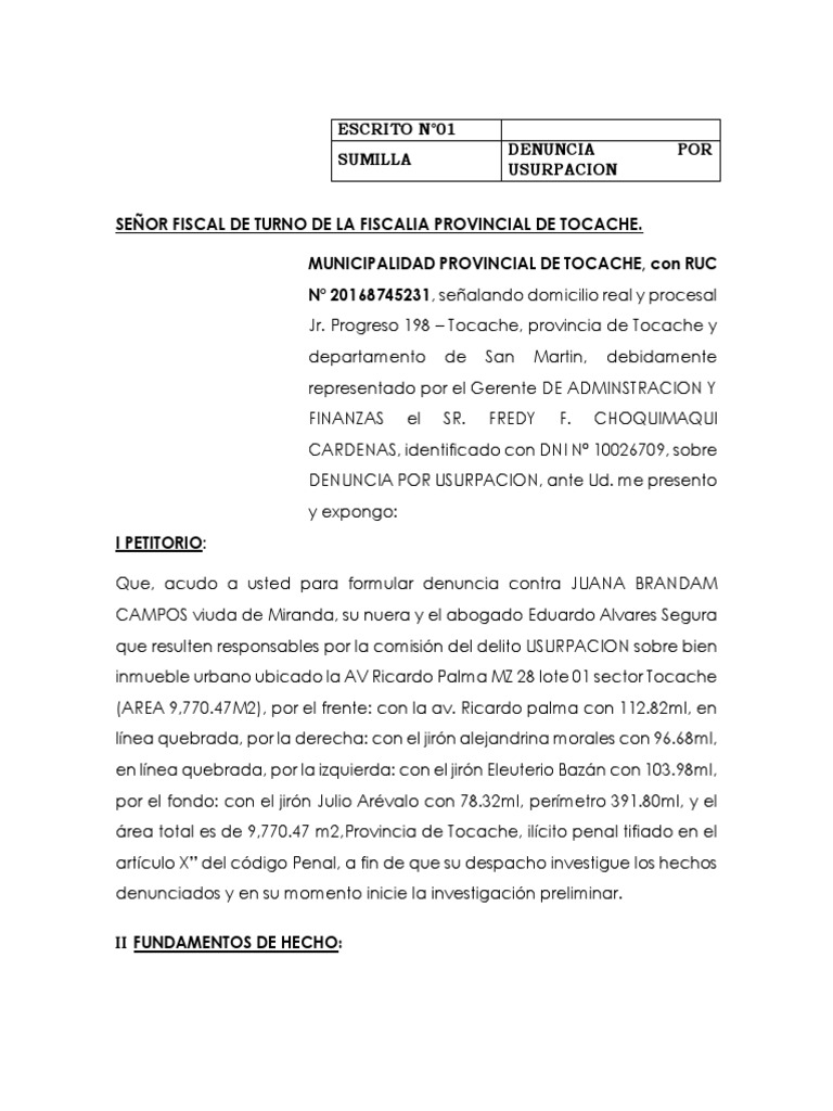 Modelo De Denuncia Por Usurpacion Agravada Y Danos De Acuerdo Con El Ncpp Lp