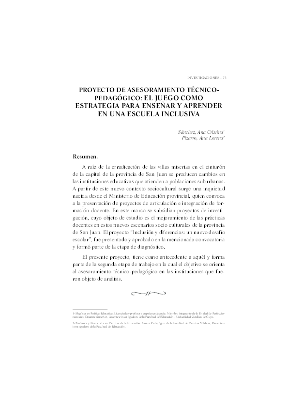Pdf Proyecto De Asesoramiento Tecnico Pedagogico El Juego Como Estrategia Para Ensenar Y Aprender En Una Escuela Inclusiva Boletin De Ensenanza En Educacion Superior Universidad Catolica De Cuyo Academia Edu