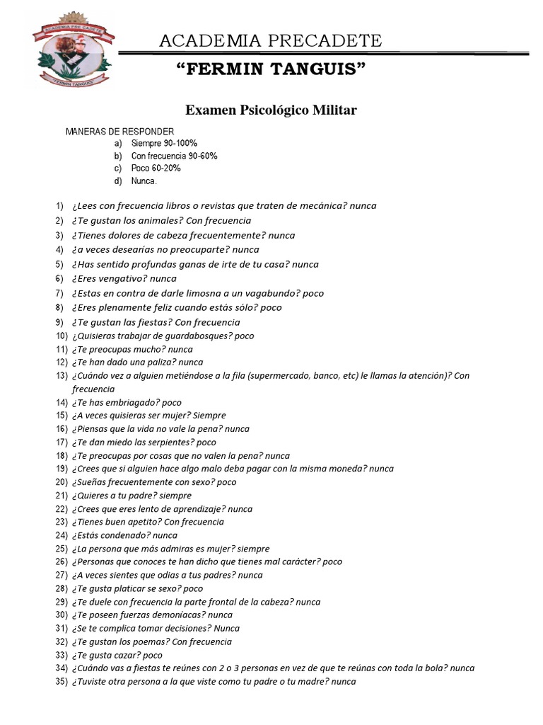 Examen Psicologico Militar Maneras De Responder Examen Cesar Ahumada
