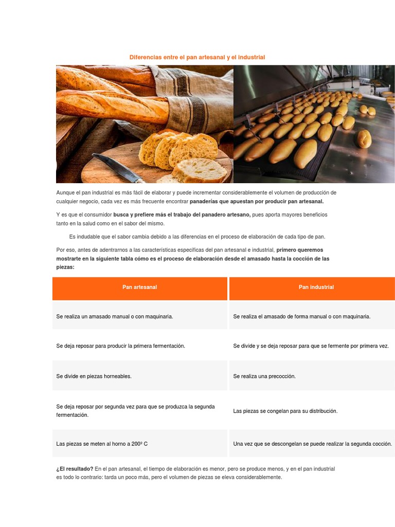 Diferencias Entre El Pan Artesanal Y El Industrial Pdf Almacenamiento De Alimentos Panes